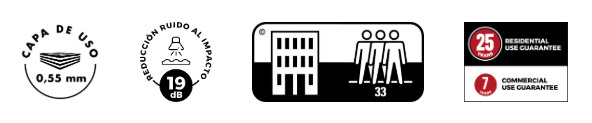 SPC (Stone Plastic Composite). De grandes dimensiones, con mayor espesor tanto en el total de la lama, como en la capa de uso. 100% resistente a la humedad, a diferencia de otros suelos, principalmente los suelos laminados, no sufre la más mínima deformación por efecto de la humedad.